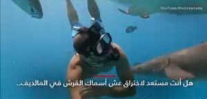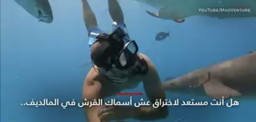 وهذا ما فعله المغامر السوري، أحمد هاشم، عندما اقتحم عش أسماك القر،ش في جزيرة مافوشي بجزر المالديف، وهي واحدة من التجارب التي لا يُمانع تكرارها بشكل يومي (شاهد مقطع الفيديو أعلاه).
