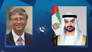 وبحث محمد بن زايد وبيل غيتس، خلال الاتصال، إمكانيات تعزيز التعاون المشترك والمبادرات في مواجهة الأمراض الوبائية في العالم مثل “مرض شلل