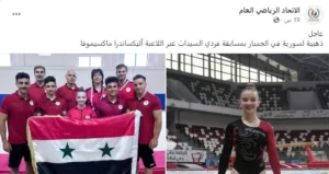 ونشر الاتحاد الرياضي العام التابع لحكومة ميليشيا أسد خبراً مقتضباً مساء أمس عن فوز اللاعبة أليكساندرا ماكسيموفا بذهبية لسوريا في الجمباز بمسابقة فردي السيدات.
