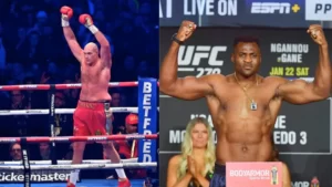 في حين قال البطل العالمي فرنسيس أنجانو: “كنت أنتظر لقاء تايسون في الحلبة على مدى السنوات الثلاث الماضية. كان حلمي دائماً هو الملاكمة، وملاكمة الأفضل. بعد أن أصبحت بطل فنون القتال المختلطة (MMA) للوزن الثقيل بجدارة، هذه هي فرصتي لتحقيق هذا الحلم وترسيخ مكاني كأشرس رجل على وجه الأرض.