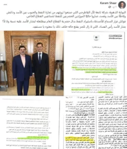 شبكة كنعان الإخبارية > كل المقالات > الأخبار > #القاطرجي يحتكر توزيع النفط لصناعيي القطاع الخاص.. وخبير اقتصادي: فساد رأسه بشار الأسد