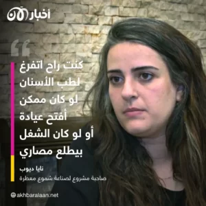 وفيما إذا كان من الممكن أن يساعدها هذا العمل في افتتاح عيادة لاحقا لممارسة مهنتها الأصلية قالت نايا “الصراحة ما بظن إنه كمان يطلع (المشروع) مصاري أفتح فيهن عيادة، بس بمشيني لحتى أنا مثلا عم بختص، بكفي اختصاص، بطلع لي مصروفي، بخليني مثلا ما أزيد عبء على أهلي”.