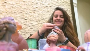 وقالت نايا “أنا من لما كنت بالجامعة كنت أشتغل أسنان بالشمع، وكنت أحب هدا الشيء يعني النحت وفن الشمع كله، بعدين لما تخرجت كان قدامي كتير خيارات لحتى أنا اطّلع مصروفي أو أساعد أهلي أو هيك. بس ولا واحد منهم قابل للتحقيق، بالأخير قررت إنه أعمل مشروع صغير لحالي وبعدين هلأ صارت تساعدني فيه رفيقتي عن جديد فصرنا عم نلم بعض، كمان هي خريجة طب أسنان”.