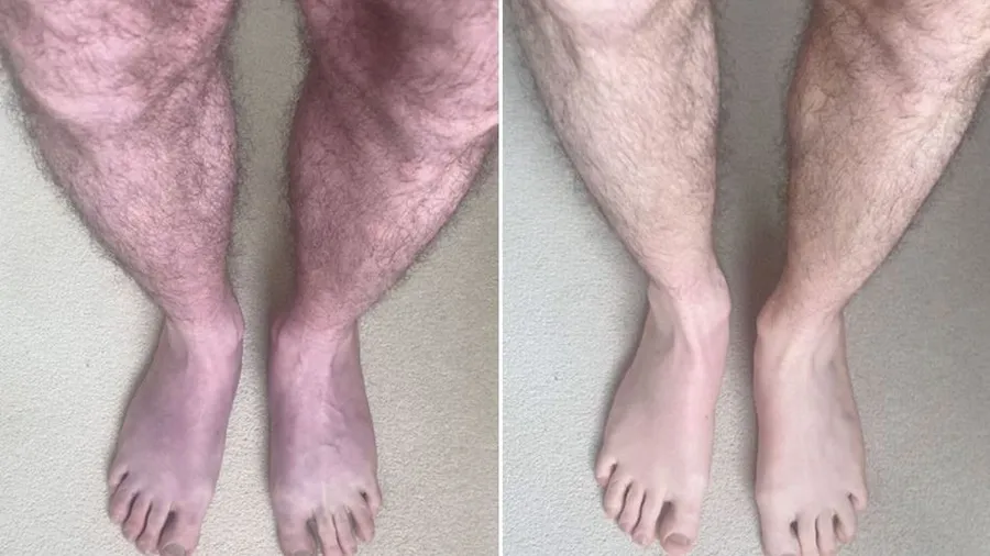وبعد دقيقة واحدة من وقوف المريض، تبدأ ساقاه بالاحمرار ثم تتحولان إلى اللون الأزرق وتصبح عروقه أكثر بروزا للخارج ومن ثم يعاني الحكة، وفقا للحالة التي سلطت عليها الضوء شبكة “سكاي نيوز” البريطانية.