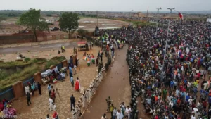 وصباح السبت نصب مئات المحتجين خياما أمام قاعدة عسكرية فرنسية في نيامي عاصمة النيجر على مدى الأيام الستة المنصرمة للمطالبة برحيل القوات، في أحدث علامة على تنامي العداء لفرنسا بين مؤيدي الانقلاب العسكري الذي وقع في يوليو الماضي.
