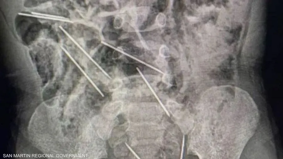 أنقذ أطباء في شمال شرق بيرو حياة طفل عمره عامان، بعد أن ابتلع 8 إبر حقن وهو يلعب.