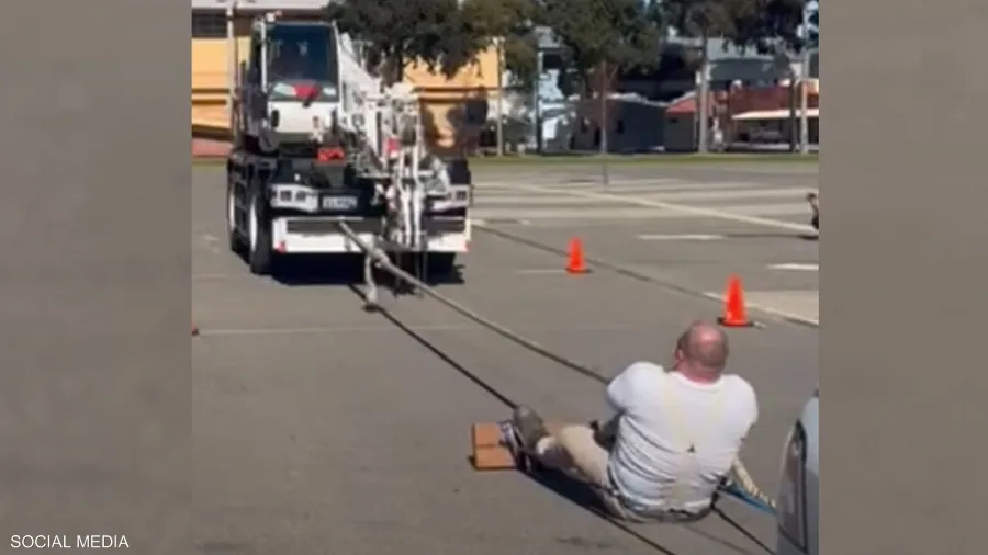 حطم لاعب كمال أجسام أسترالي رقما قياسيا عالميا باستخدام الجزء العلوي من جسده فقط في سحب رافعة هيدروليكية تزن 44753 رطلا (ما يعادل 20299